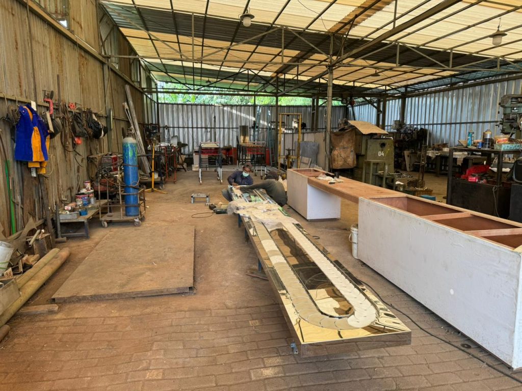 Setelah desain dan material ditentukan, tahap selanjutnya adalah proses pengerjaan di workshop yang meliputi pemotongan material, proses welding, serta perakitan komponen conveyor. Pada tahap ini teknisi akan merakit rangka conveyor, memasang roller atau belt conveyor, serta memasang komponen penggerak seperti motor dan gearbox.